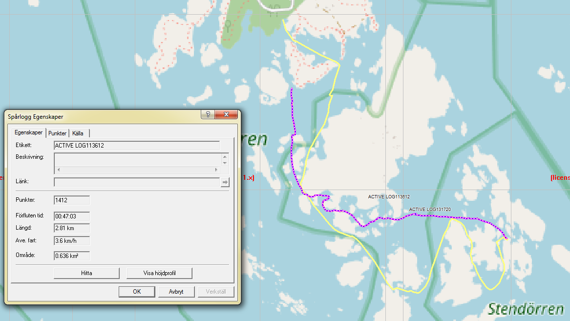 Så här paddlade vi ut (missade logga första delen på 0,5 km).