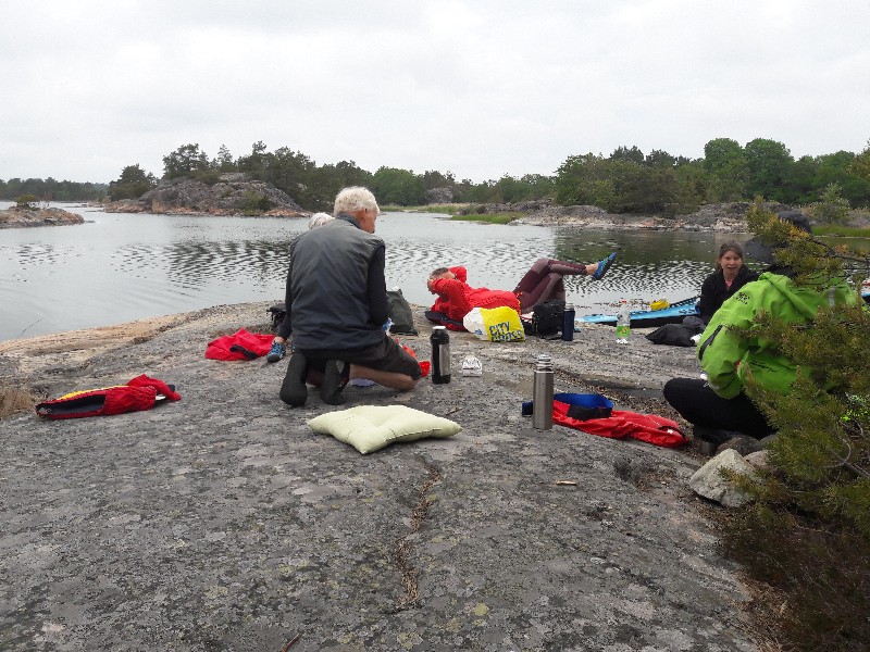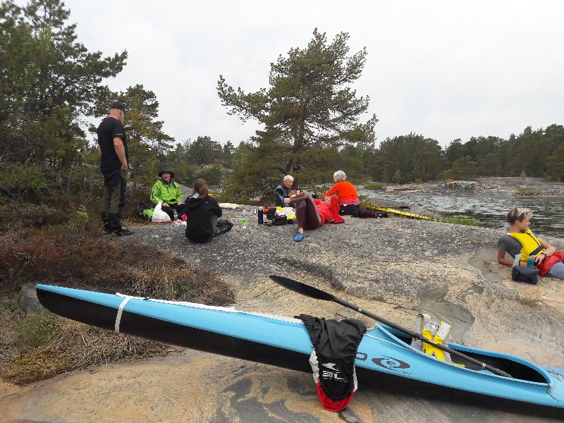 Vi fick några regnstänk men hade i övrigt en väldigt trevlig paddling med fika-lunch vid NV-hörnet av Springarholmen syd om Griskär.